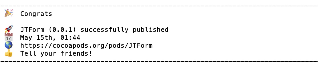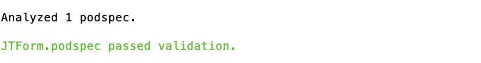 cd到项目中,在readme.md的位置使用pod spec create JTForm。这个命令会生成一个JTForm.podspec的文件。