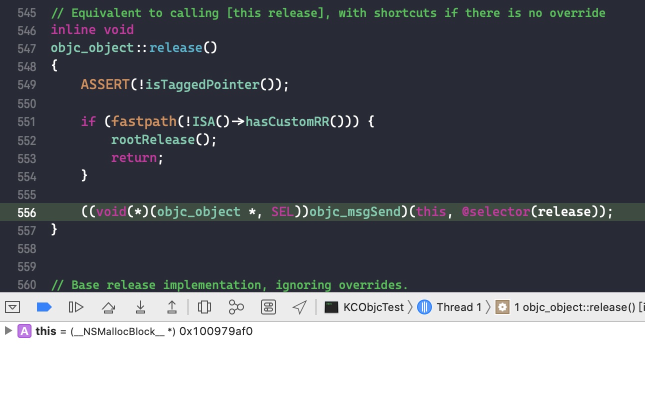 block 是特殊的类,自己重写了release()函数,所以代码 ISA()->hasCustomRR() 返回的结果是 true,将执行自己重写的 release() 函数