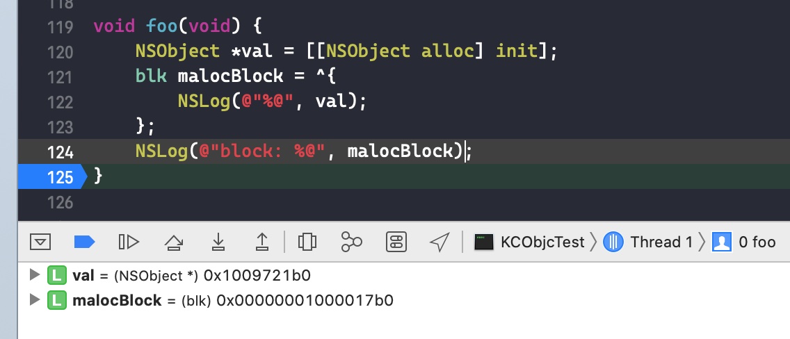 创建一个 malloc block 类型的 block,foo() 结束,block 会被回收。