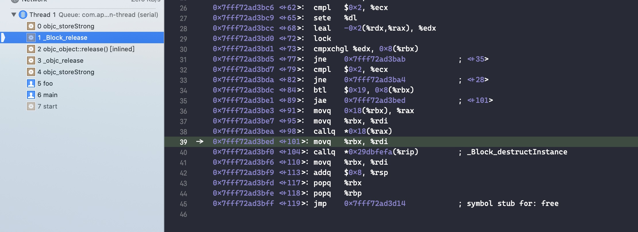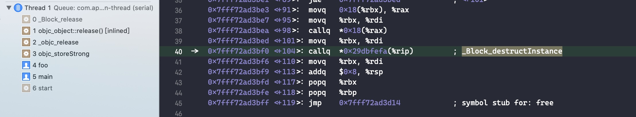 因为没有 block 的 release()源码,通过调用栈发现随后调用了 _Block_release() 函数
