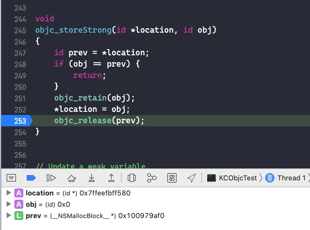 - 如果 isWeak 为 true, 则将 Block_byrefs 实例的 isa 指针指向 _NSConcreteWeakBlockVariable