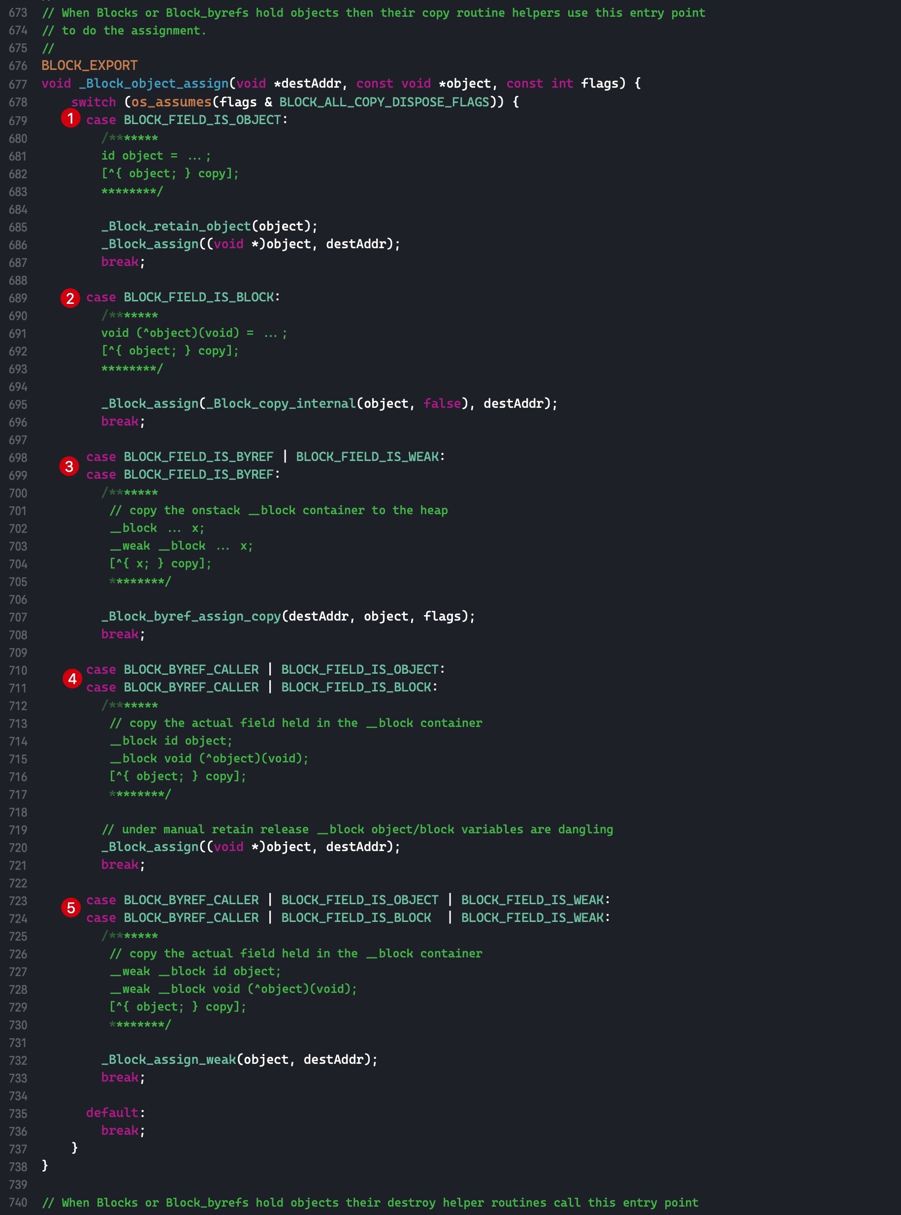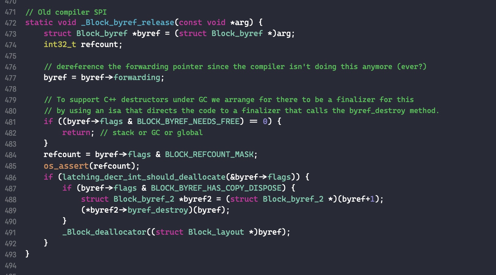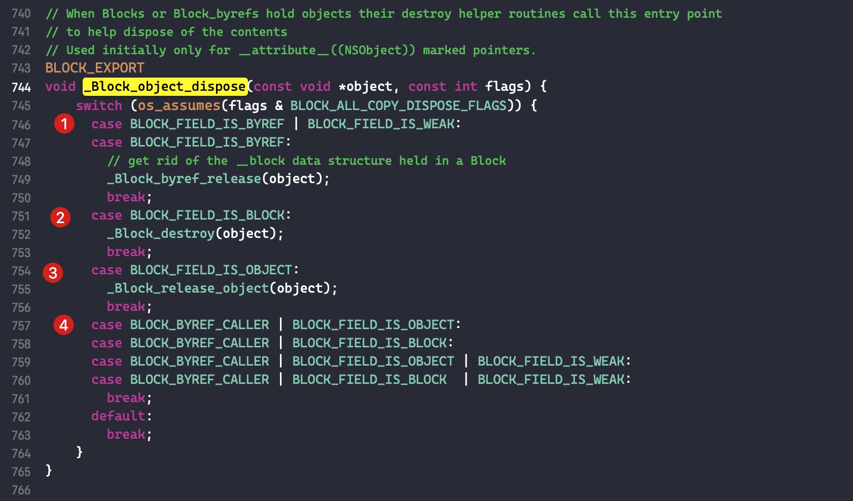 为了方便,后面将 Block_layout 的 copy/dispose 函数简称为 Block copy/dispose 函数; Block_byref 的 byref_keep/byref_destroy 函数简称为 __block copy/dispose 函数