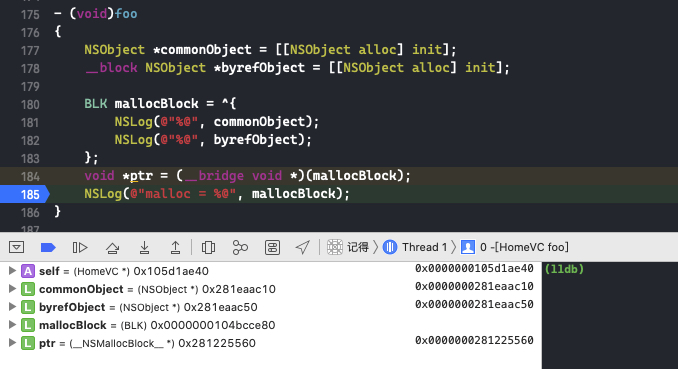 - void *isa:一般指向 0x0,如果该变量还被 __weak 修饰,则指向 _NSConcreteWeakBlockVariable